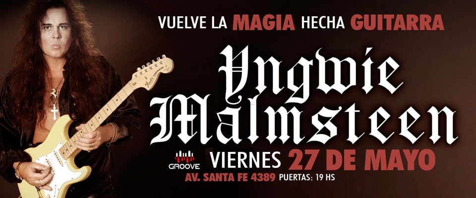 Yngwie Malmsteen vuelve a presentarse en vivo en nuestro país el viernes 27 de mayo en Groove! Las entradas ya se encuentran a la venta por sistema Ticketek.
